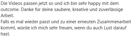 Meine Kunden schätzen meine verlässliche Arbeitsweise, mein Auge fürs Detail und mein Marketing Know-How.