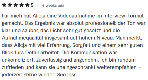 - Man merkt, dass Alicja mit viel Erfahrung, Sorgfalt und einem guten Blick fürs Detail arbeitet